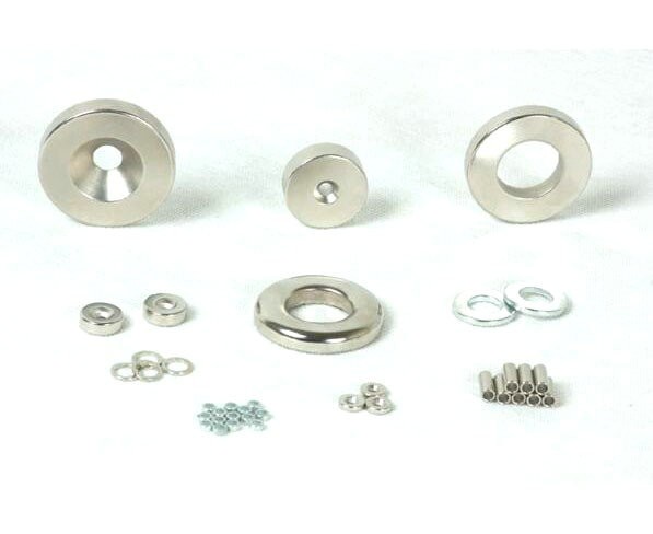 強磁釹鐵硼異形工藝流程:配料 → 熔煉製錠/甩帶→ 製粉 → 壓型 → 燒結回火 → 磁性檢測 → 磨加工 → 銷切加工 → 電鍍 → 強磁釹鐵硼異形成品。其中配料是基礎,燒結回火是關鍵。