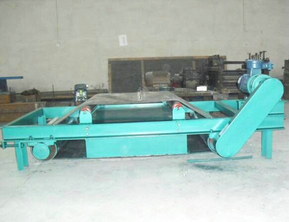 由高性能永磁磁芯、棄鐵皮帶、減速電機、框架、滾筒等部分組成,與各種輸送機配套使用。用於從非磁性物料中自動清除0.1—35公斤重的鐵磁性物質。其內部磁路采用計算機模擬設計、完善的結構,保障整機在惡劣環境中無故障長期運行。