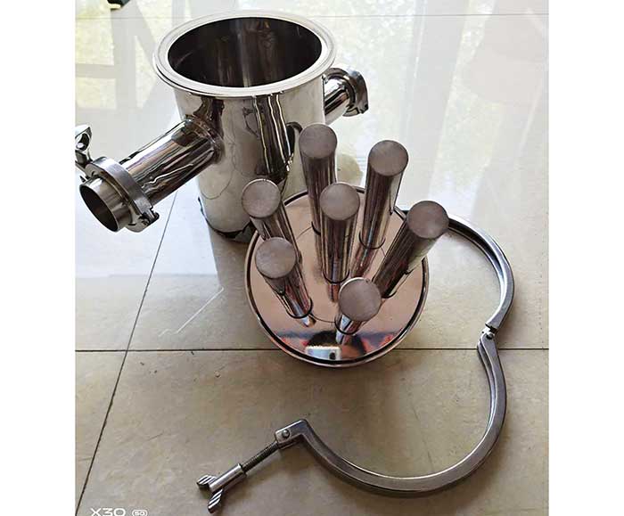 流體式秋葵视频网站进入是永磁秋葵视频网站进入的一種,主要應用於過濾液體狀、漿料、管道風力輸送的粉狀物料中的鐵雜質,由於除鐵效果明顯,清洗操作方便,已廣泛應用於食品、製藥、精細化工、新能源等行業。