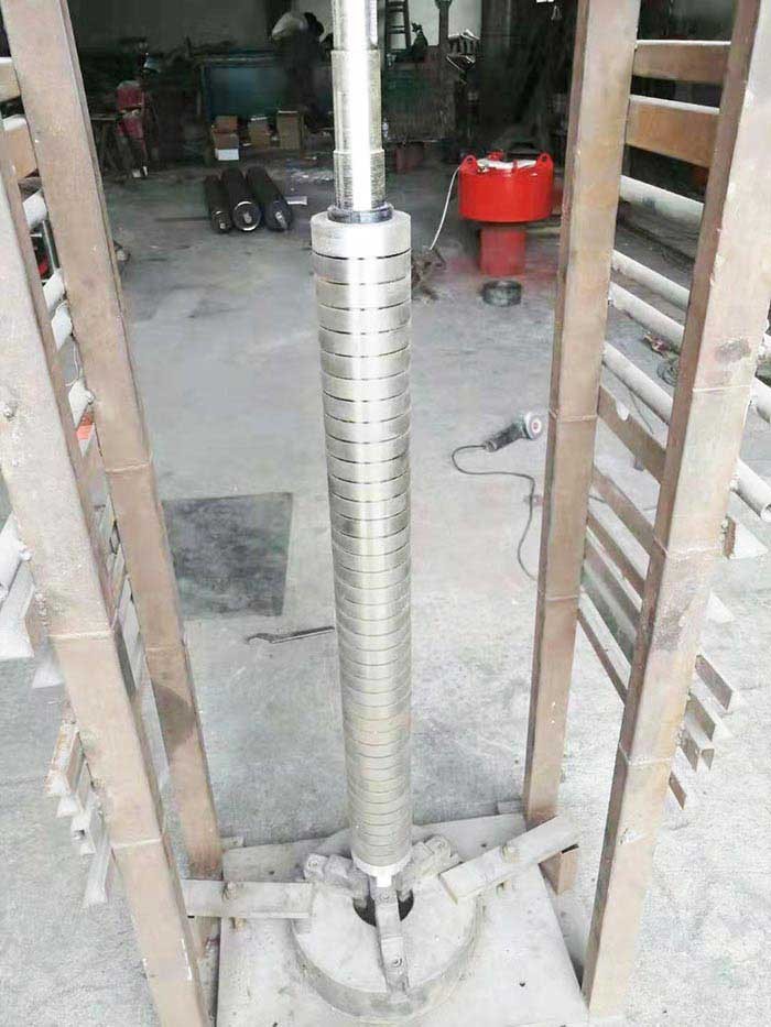 由高強磁釹鐵硼組成磁係,磁力高達10000GS-17000GS,可做成直徑100、直徑134、直徑150、直徑160、直徑220。長度任意定。